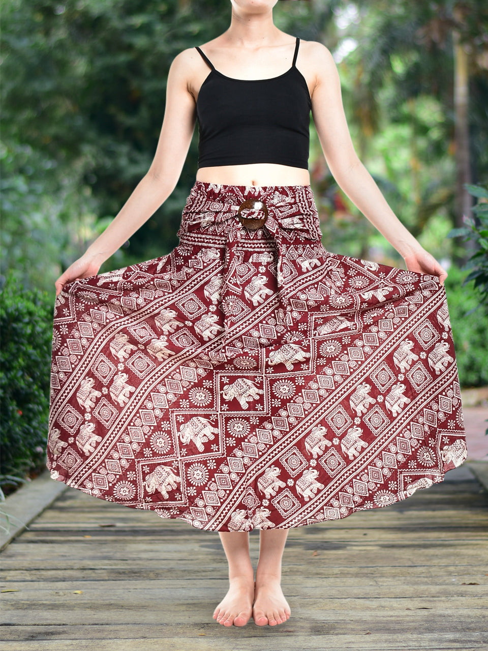 Bohotusk Red Elephant Print Long Skirt With Coconut Buckle (& Strapless Dress) S/M Only