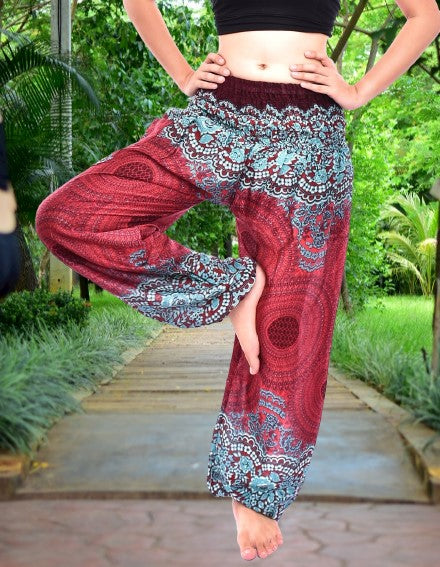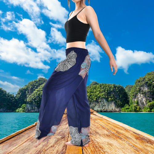 Bohotusk Black Peacocks Eye Elasticated Smocked Waist Womens Harem Pants S/M - 3XL