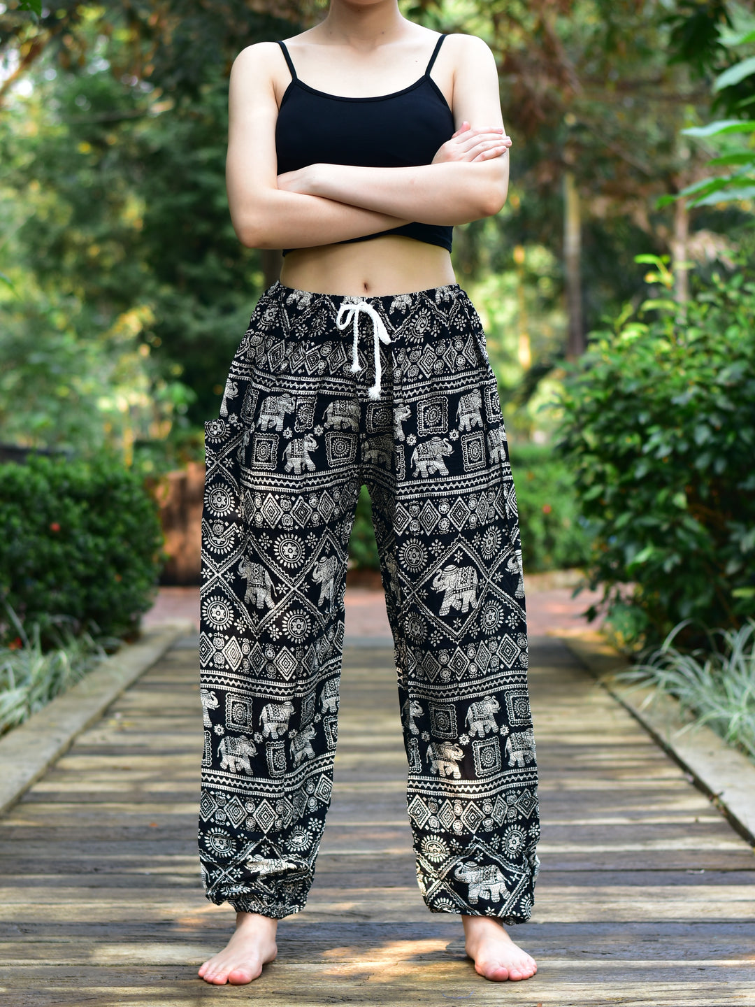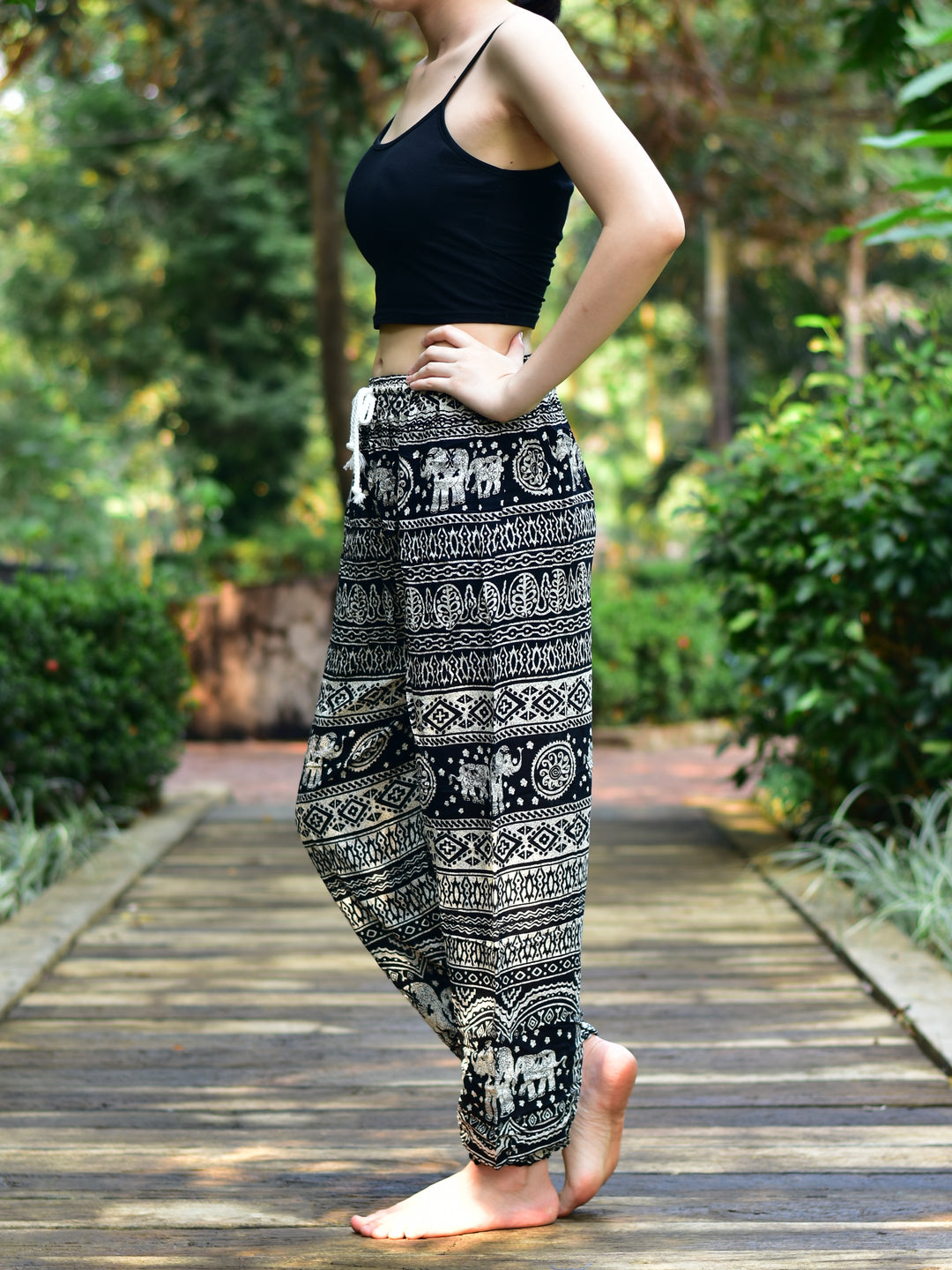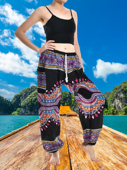 Our harem pants are crafted from high-quality Royal Thai Rayon, known for its lightweight, breathable, and comfortable properties, perfect for warm weather.