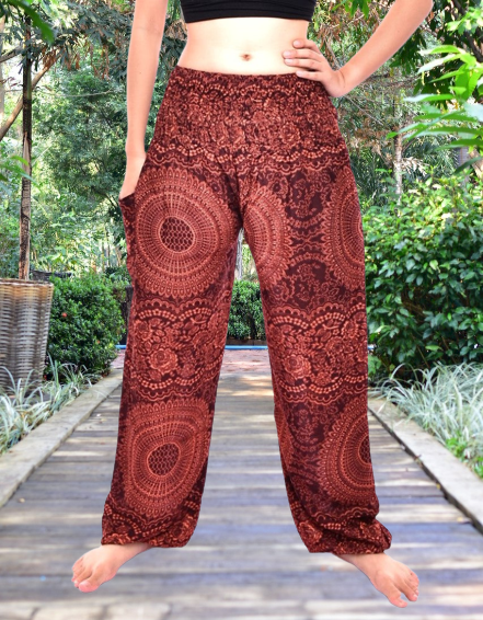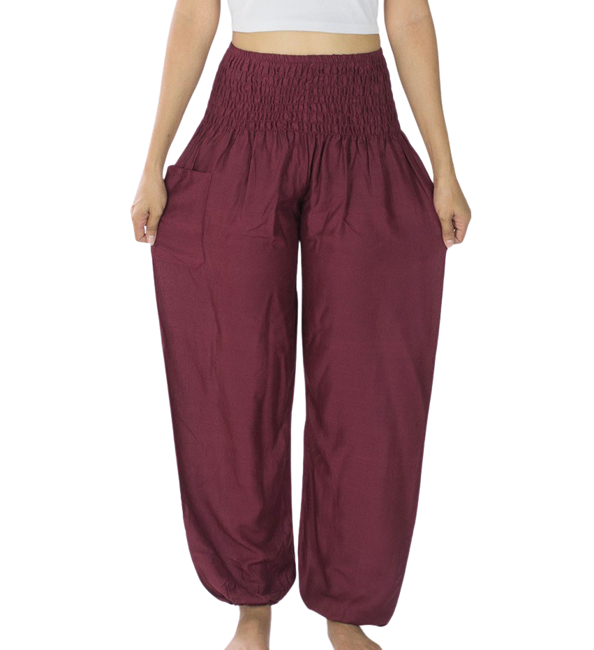 Look for yoga harem pants made from breathable fabrics like cotton or bamboo. Check that they fit comfortably around the waist and hips and allow plenty of room in the legs. Choose a design that you love and check for brands that focus on sustainable and ethical practices.